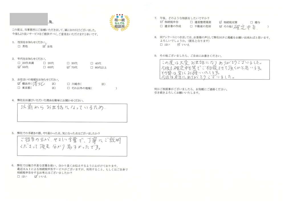 横浜相続なんでも相談所は丁寧な説明を心掛けております。確定申告も是非ご相談ください。